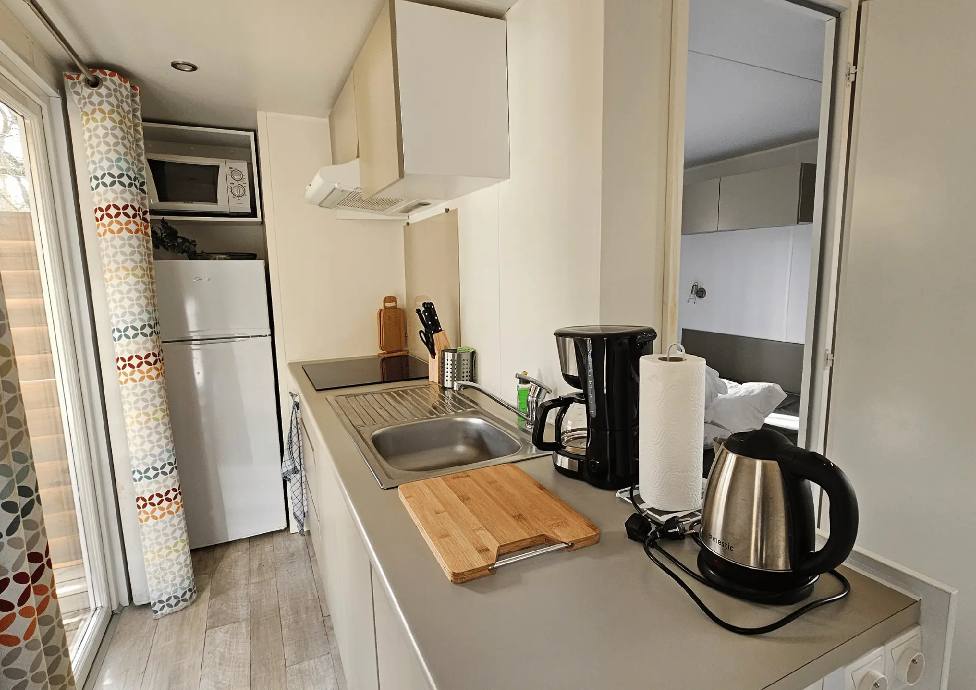 ✔️ 16 m2 Wohnfläche ✔️ Terrasse ✔️Nähe See ✔️ Doppelbett Sofa Sitzbereich ✔️ Eigenes Badezimmer ✔️ Dusche ✔️ WC ✔️TV ✔️ Bettwäsche✔️Handtücher✔️Küchenzeile✔️Kochplatte ✔️Küchenutensilien✔️Kühlschrank mit Gefrierfach✔️Heizung ✔️Mikrowelle ✔️Klimaanlage