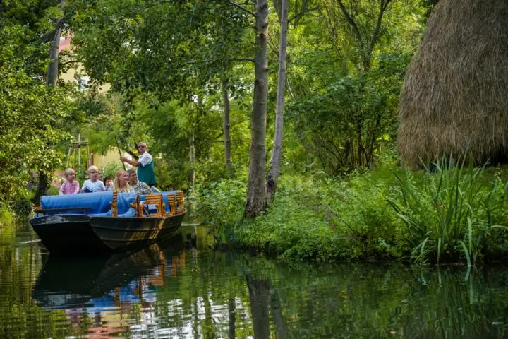 Über 300 Brücken verbinden die Ortsteile von Burg – mehr als in Venedig! Eine Kahnfahrt führt vorbei an alten Gehöften und Gärten, während Fährleute Geschichten über Natur und Kultur erzählen. Wer lieber selbst aktiv wird, leiht sich ein Kanu oder Paddelboot.